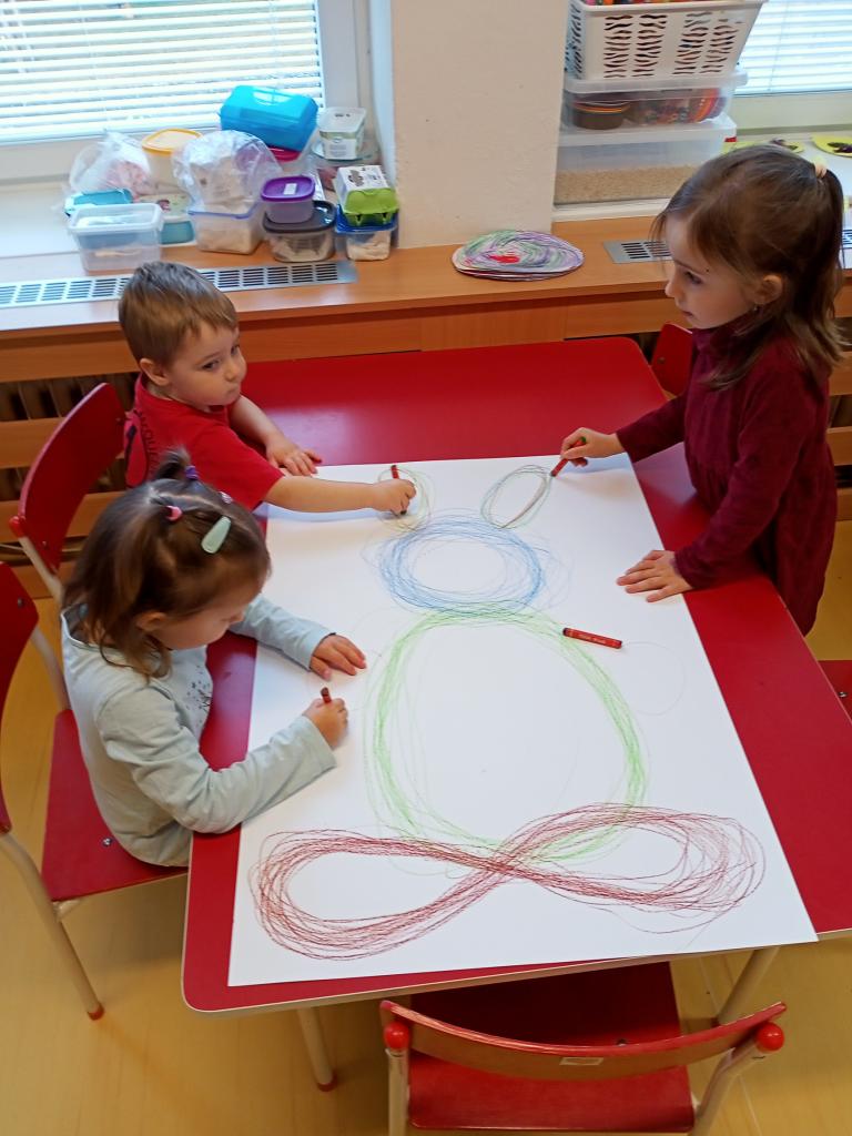 Velký prostor věnujeme také rozvoji řeči, zpěvu a práci s říkadly či pohádkami. Děti si upevňují základní sociální návyky, učí se spolupracovat a vzájemně si pomáhat. Každodenní činnosti jsou přizpůsobeny jejich věku tak, aby se rozvíjely po všech stránkách – hravou a přirozenou formou.