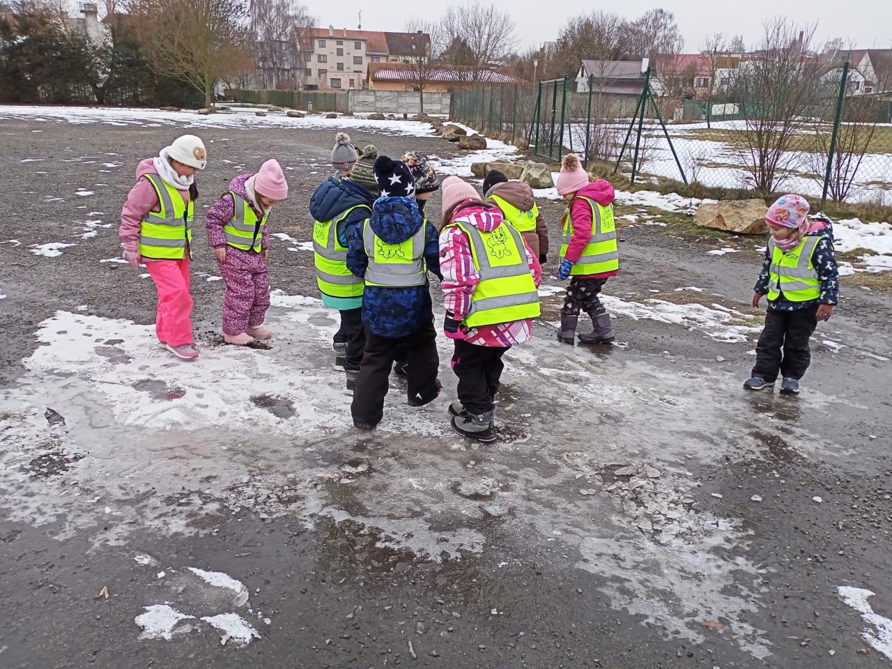 Využili jsme také zimní počasí k pobytu venku. Děti si užívaly pobyt na školní zahradě i vycházky do okolí, kde měly možnost pozorovat zasněženou přírodu a rozvíjet své pohybové dovednosti. Pokud počasí dovolilo, zařazovali jsme různé pohybové hry a soutěže, které podporovaly radost z pohybu a spolupráci mezi dětmi.