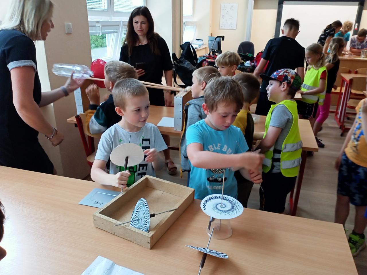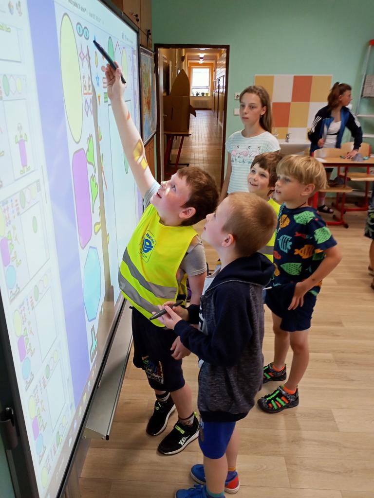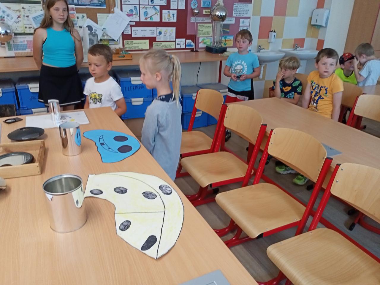 V pátek, 23.6.2023, se předškolní děti z 1., 3., 7. a 8. třídy zúčastnily Projektového dne na ZŠ. Děti navštívily učebny přírodopisu, fyziky, informatiky a zeměpisu, kde si pro ně žáci připravili různé zajímavosti a pokusy, které si pak mohly děti samy vyzkoušet. Děti si návštěvu ZŠ moc užily.