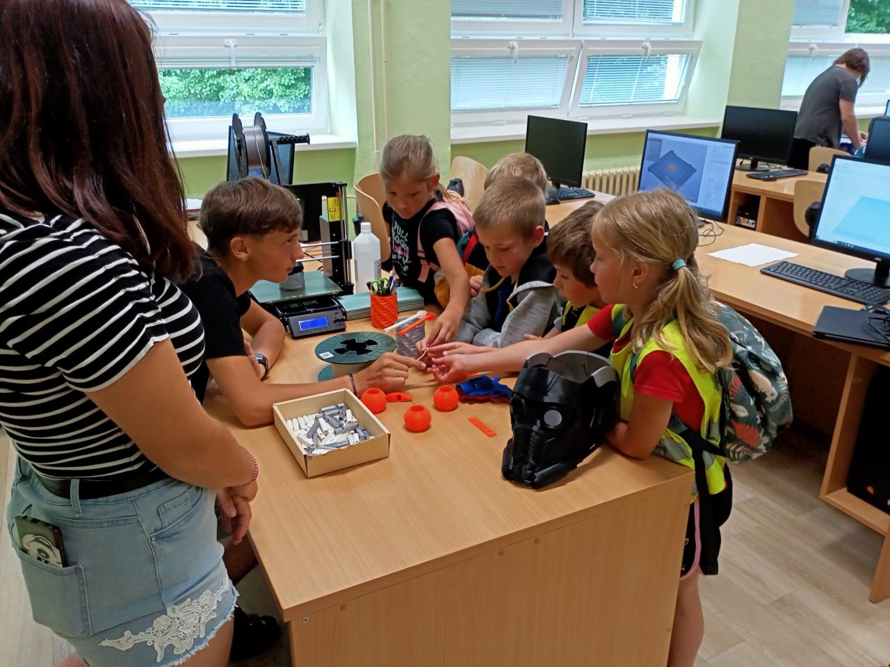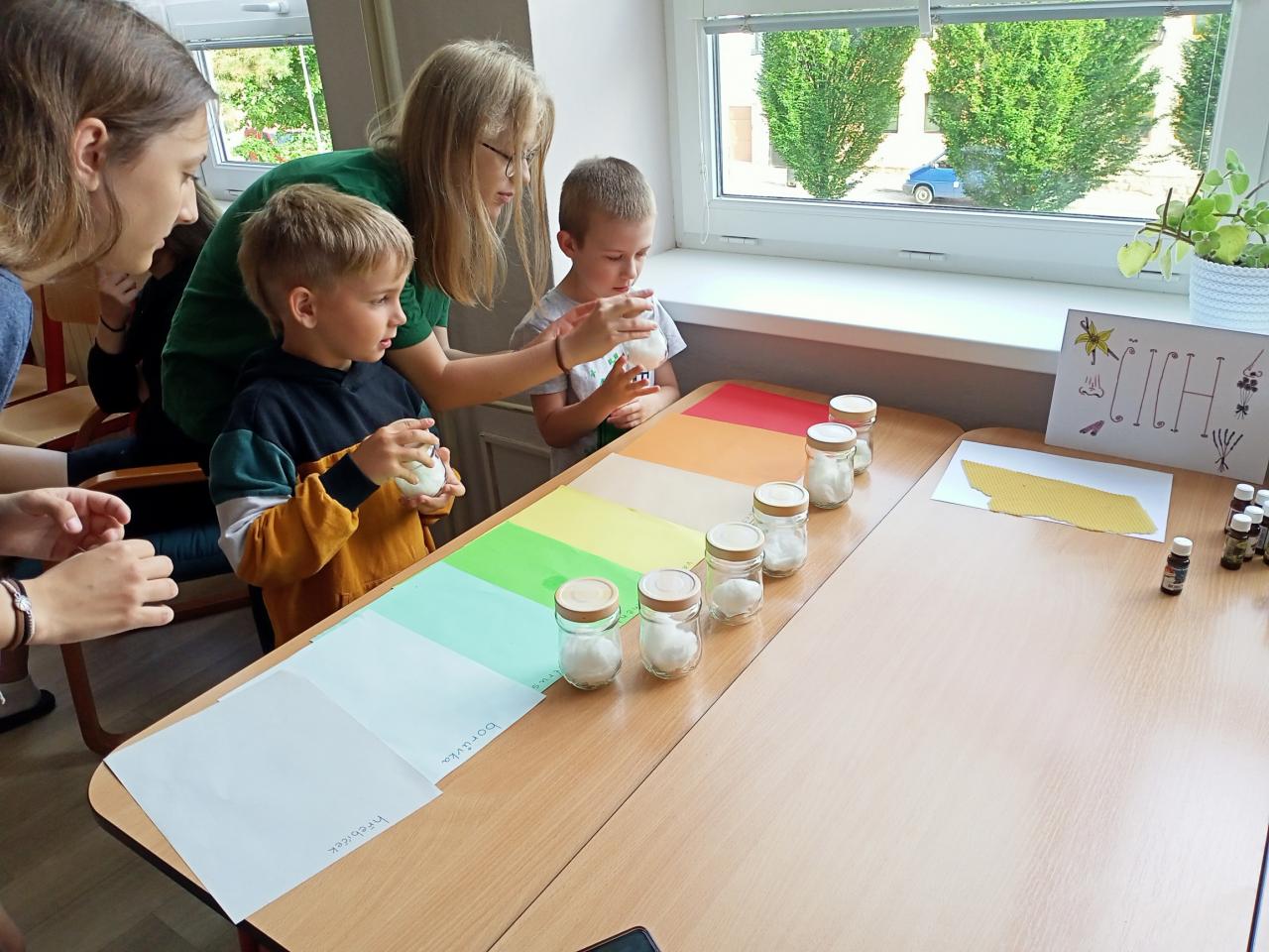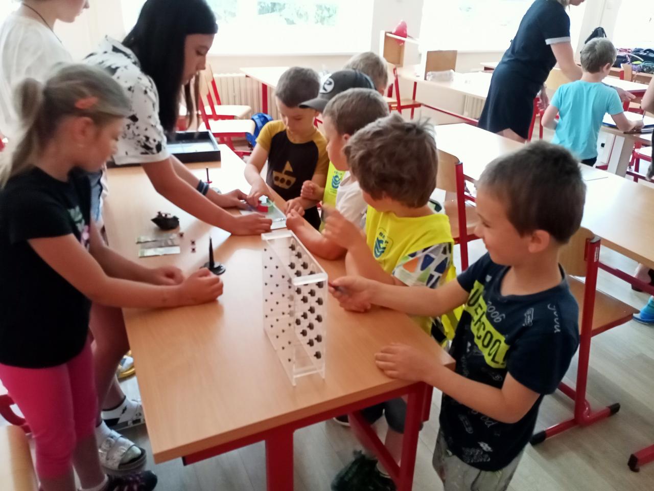 V pátek, 23.6.2023, se předškolní děti z 1., 3., 7. a 8. třídy zúčastnily Projektového dne na ZŠ. Děti navštívily učebny přírodopisu, fyziky, informatiky a zeměpisu, kde si pro ně žáci připravili různé zajímavosti a pokusy, které si pak mohly děti samy vyzkoušet. Děti si návštěvu ZŠ moc užily.