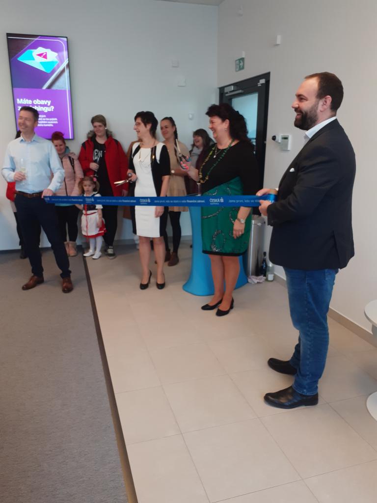 Při příležitosti otevření pobočky ČS v nově zrekonstruované budově školy na náměstí, byly pozvány i děti z naší MŠ. Představily se zde s krátkým pásmem básniček a písniček s jarní tématikou.
