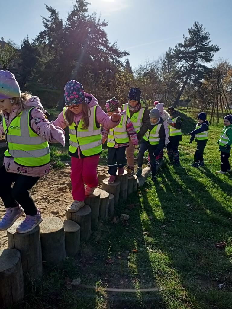 I když listopad přináší chladnější počasí, děti i nadále tráví čas venku. Oblíbené jsou procházky, během kterých děti sbírají přírodniny jako barevné listí, větvičky nebo šišky. Učí se o přírodních změnách a vytvářejí si vlastní podzimní „poklady“.